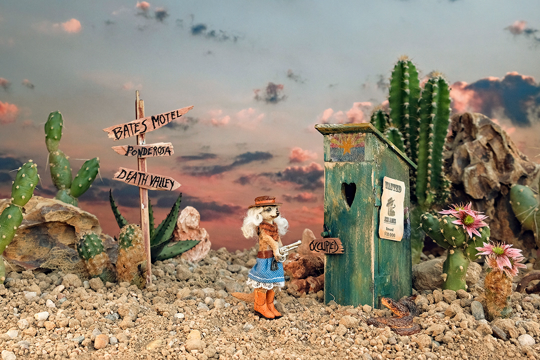 Vor ca. 15 Jahren begann Ingrid Ohm ihr Kunstprojekt ‚Multiple Mini Art‘, einer szenographischen Miniaturfotografie mit handgefertigten Dioramen, in denen ca. 5 cm große Erdmännchen-Kunststofffiguren des Münchner Spielwarenherstellers Schleich die Hauptrollen spielen und über wechselnde Identitäten für skurrile Ansichten mit Augenzwinkern sorgen. Mal virtuos, mal verspielt, mal sachlich fokussiert, aber immer mit feinsinnigem Humor. Sämtliche Dioramen und Kostüme und Frisuren (dazu wurden einige Barbie-Puppen skalpiert) sind handgefertigt und speziell für die fotografische Szenographie im Kleinformat entworfen. In den individuell erstellten Szenerien, mit den passenden Requisiten im Miniaturformat, entstehen so immer neue, humorvolle, aber auch hintergründige Deutungen auf uns selbst. Wenn ihre Inszenierung vollumfänglich ihrer Vorstellung entspricht, dann fotografiert Ingrid Ohm sie im entsprechenden Kontext ab.
