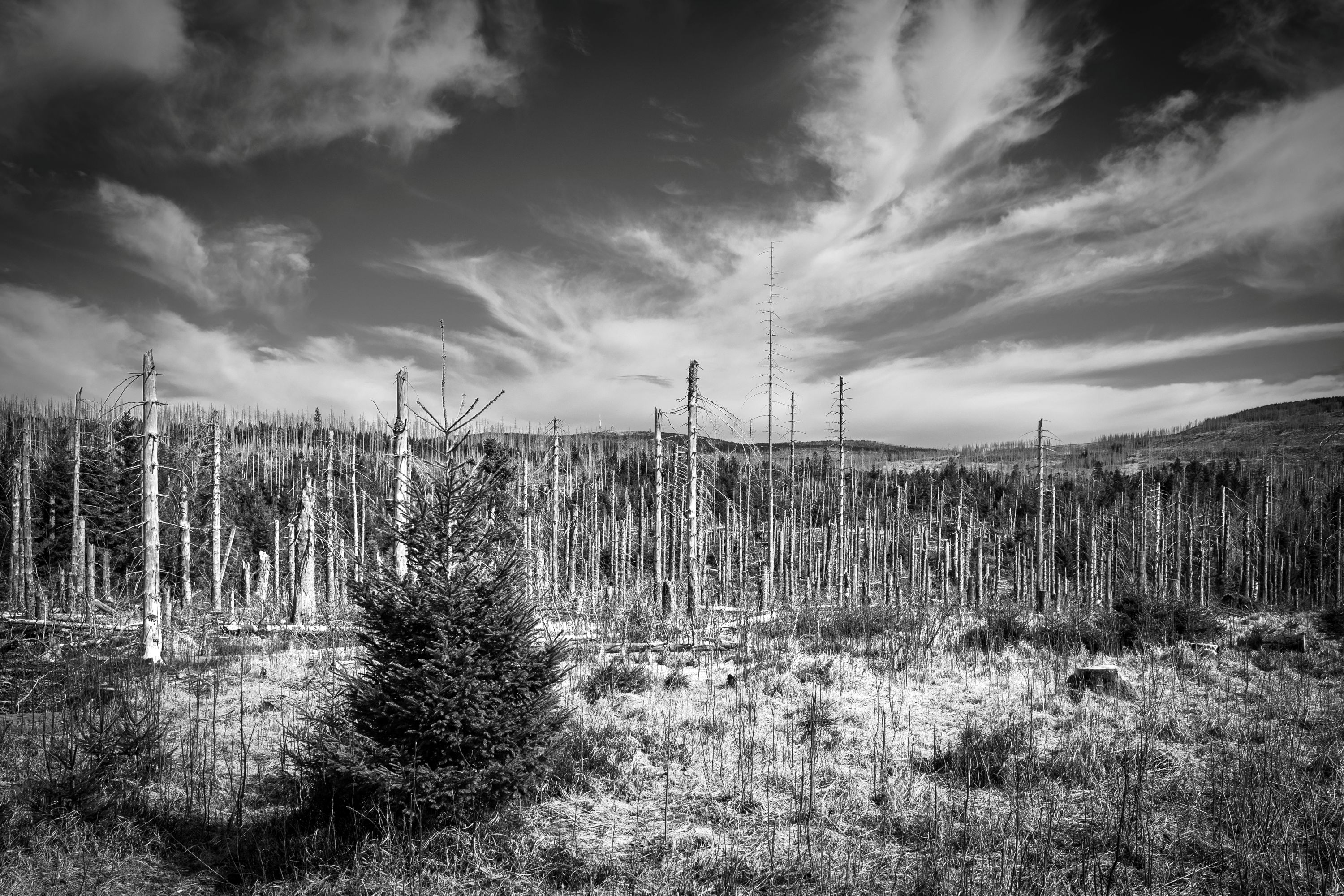 Dieter K. war für einige Tage Anfang April im Harz unterwegs. Pilze am Totholz und mit Moos bewachsene Baumstümpfe waren unter anderem seine Motive. Beeindruckend und beängstigend zugleich ist sein Bild vom Waldsterben im Nationalpark rund um den Brocken, wo zahllose tote Bäume abgebrochen und kahl wie dunkle Zahnstocher in der Landschaft stehen. Klimawandel, Hitze und Trockenheit haben riesige Waldflächen absterben lassen und auch der Borkenkäfer hat seinen Anteil an dieser apokalyptischen Ansicht. Etwas Hoffnung machen die umfangreichen Baum-Neupflanzungen und das Engagement vieler Menschen, die sich für Wiederaufforstung, Schutz und Pflege der Wälder über verschiedene Initiativen einsetzen.