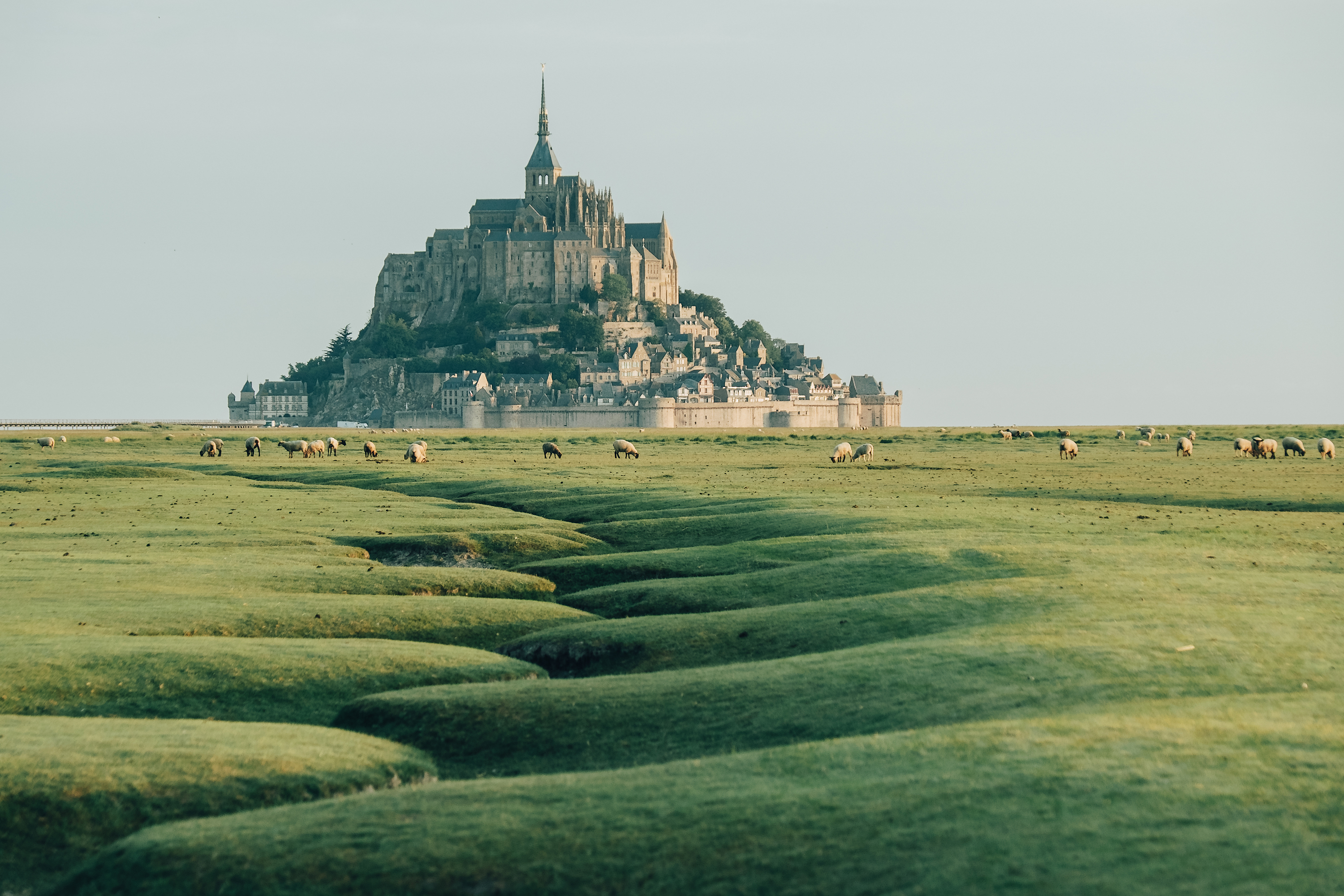 Das Motiv Mont-Saint-Michel hat Silvia aus verschiedenen Perspektiven aufgenommen. Mit Wasserzuläufen im Vordergrund, die auch grafisch interessante, grasbewachsene Priele hinterlassen haben, aufgeworfene Schotterbarrieren zur Landgewinnung, mit Wiesen und auch mit einer für die Gegend typischen, großen Schafherde. Fotografiert hat Silvia auch Häuser, die für den D-Day, den 6. Juni 1944 geschmückt waren, um der Landung der alliierten Truppen zur Befreiung von Paris und dem Ende des 2. Weltkrieges zu gedenken. Mehr als außergewöhnlich ist das Gebäude der Destillerie Palais Bénédictine in Fécamp, das an Prunk, Türmen, Türmchen und kunstvollen Giebeln und Verzierungen nicht zu überbieten ist. Der Bénédiktinerpalast ist ein majestätisches Gebäude mit Einflüssen aus der Neogotik und der Neorenaissance und ein wahres architektonisches Meisterwerk. Die Steilküsten der Normandie sind echte Wunderwerke der Natur, wobei die Kreidefelsen von Étretat zweifellos der schönste Teil der Steilküste mit faszinierenden Motiven sind.